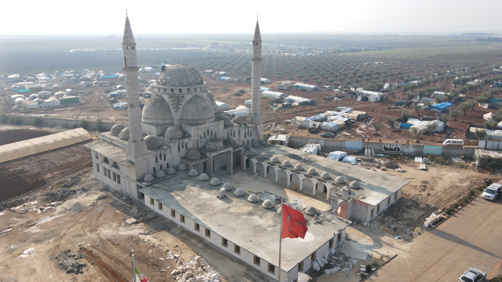 Suriye'nin Halep şehrinde Azez ilçesinde 2021'de temeli atılan Seyyid Baba Camii inşaatında çalışmalar tüm hızıyla devam ediyor.